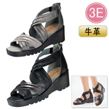 すっきりしたがらモダンなムードを醸し出すレザーウェッジサンダルです。