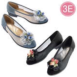 コキュ 花 リボン パンプス レディース リボンつきベロア