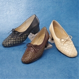 ローヒール パンプス リボン付キラキラ 1cmヒール レディース