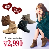 インヒール ショート ショートブーツ バックリボンカジュアル レディース