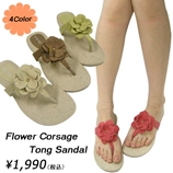 フラット 夏 サンダル フラワーコサージュ付きトング 1cmヒール レディース