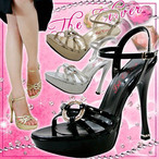 厚底 ピンヒール サンダル 当店オリジナル ラインストーン リング アンクルストラップ レディース