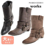 ラボキゴシワークス ローヒール レザー ショートブーツ レディース RABOKIGOSHI works ブーツ ラボキゴシ ワークス 靴 大きいサイズ