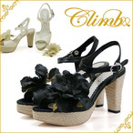 クライム 夏 厚底 サンダル レディース ハイヒール ストラップ コサージュ サテン